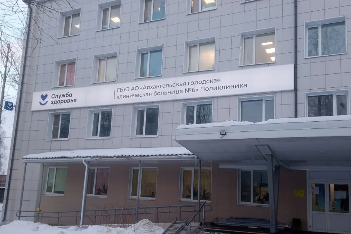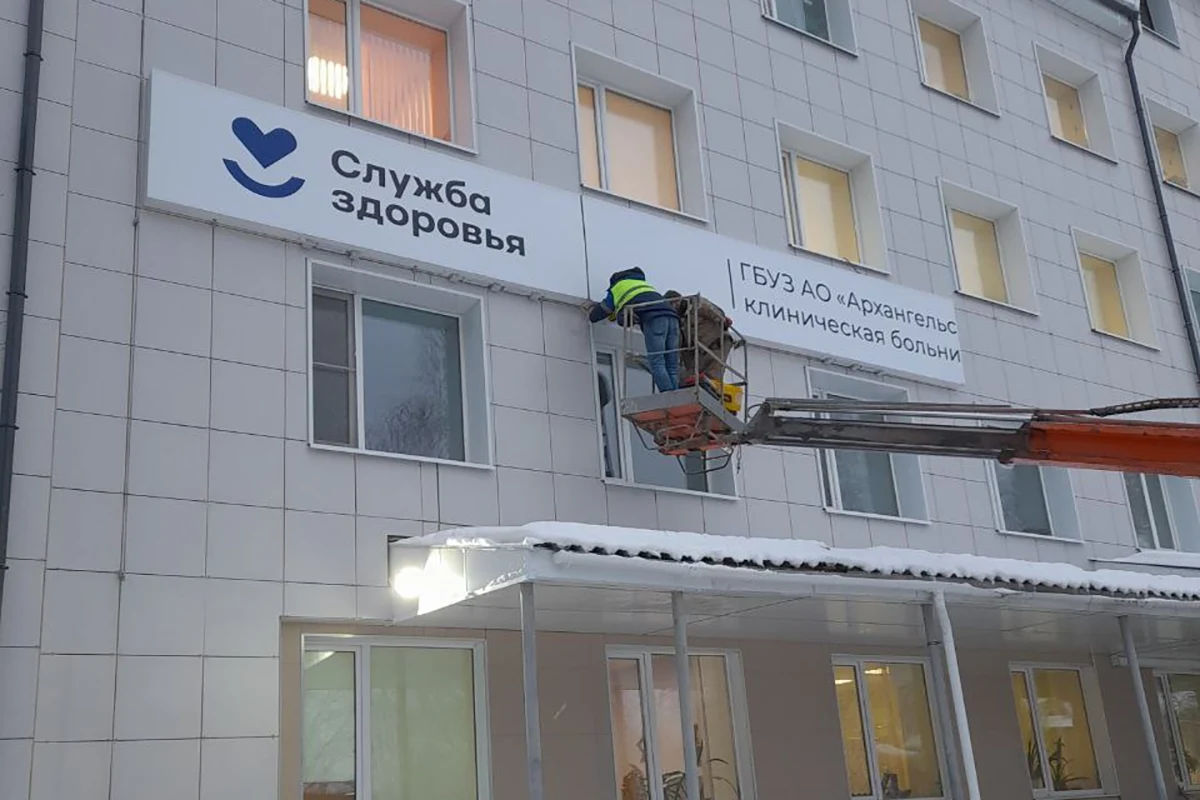 Изготовили и установили световой короб 16×1,2 м для Архангельской городской клинической больницы №6