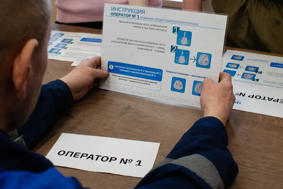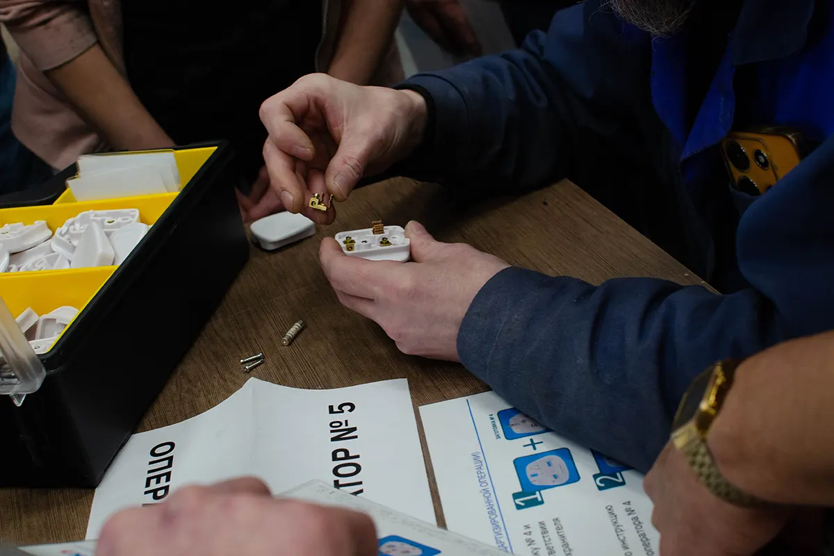 Обучение прошло прямо на рабочей площадке, без отрыва от производства. Теория подкреплялась практикой, а центральным кейсом стала сборка штепсельных электрических вилок.