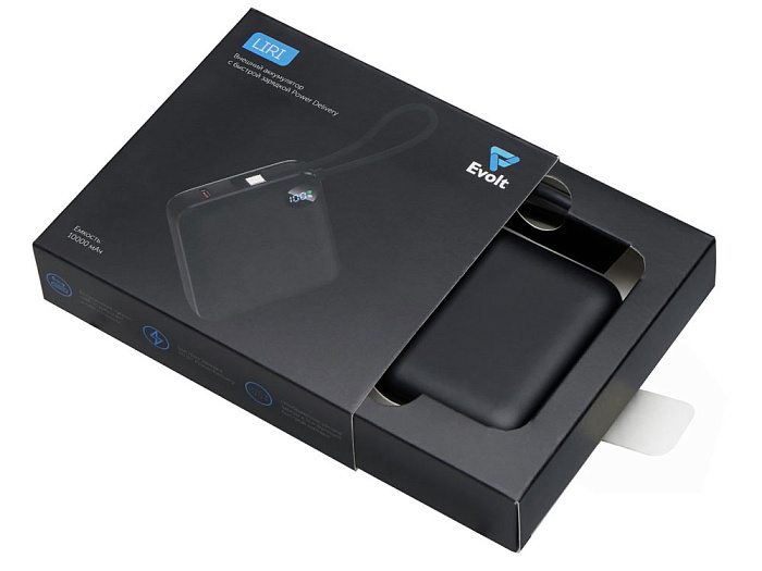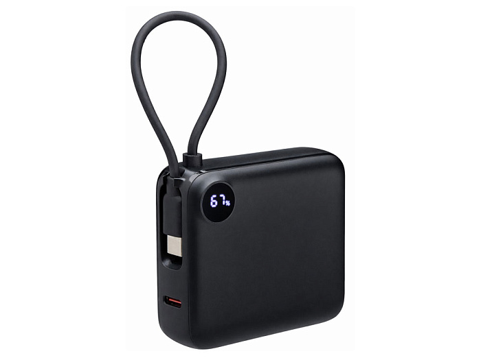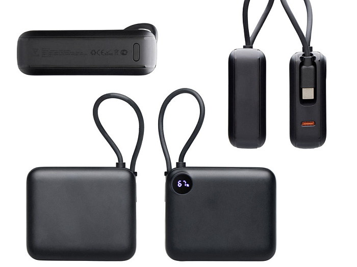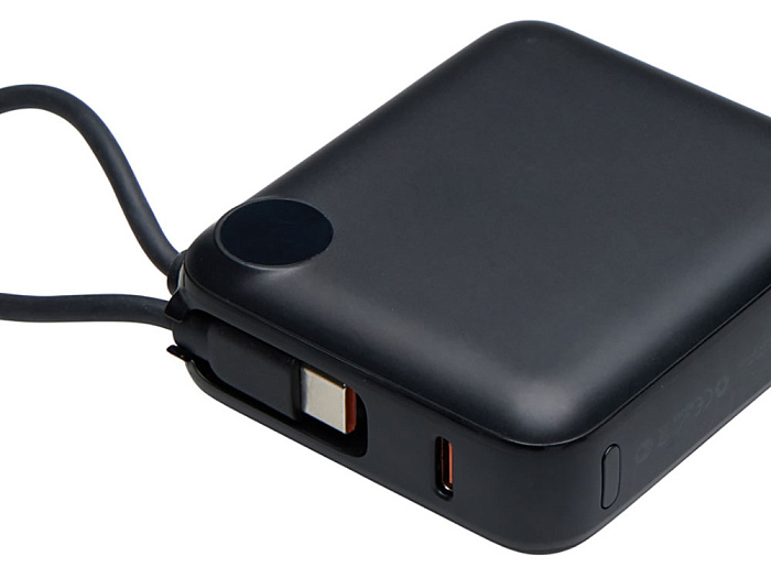 Внешний аккумулятор со встроенным кабелем Liri, QC/PD, 10000 мАч