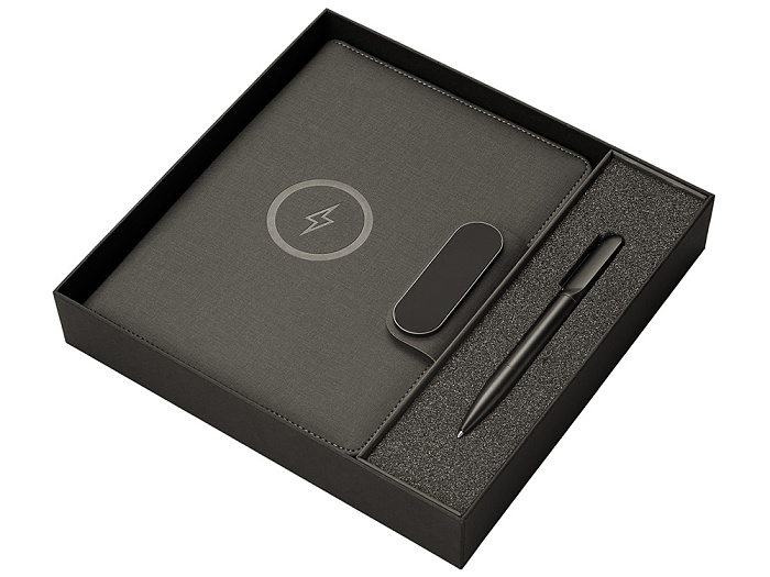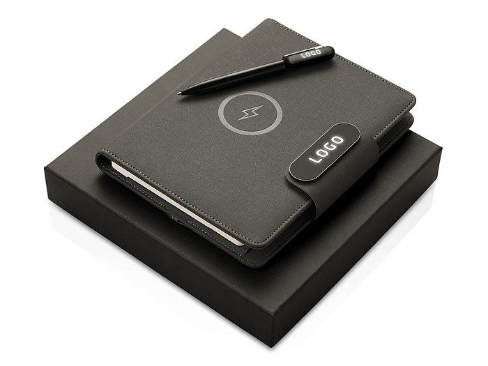 Подарочный набор Twilight: органайзер А5 с беспроводной зарядкой и металлическая шариковая ручка со светящимся логотипом
