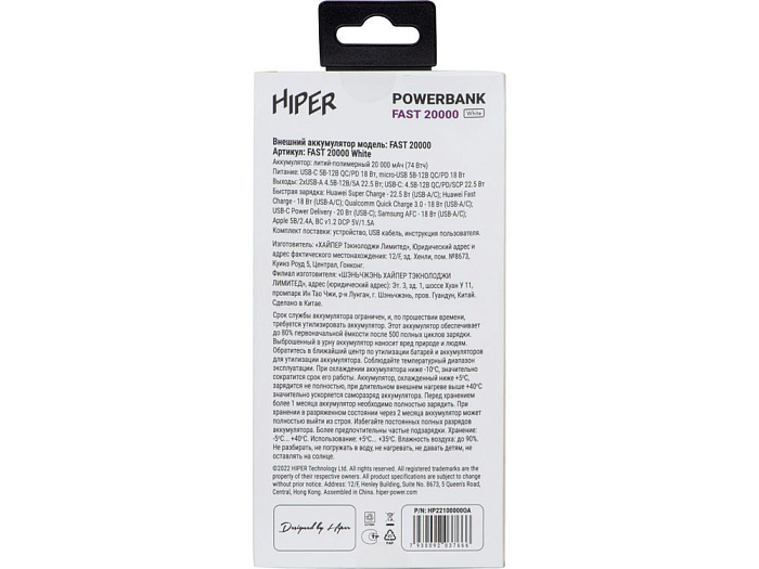 Портативный внешний аккумулятор FAST, 20000 mAh