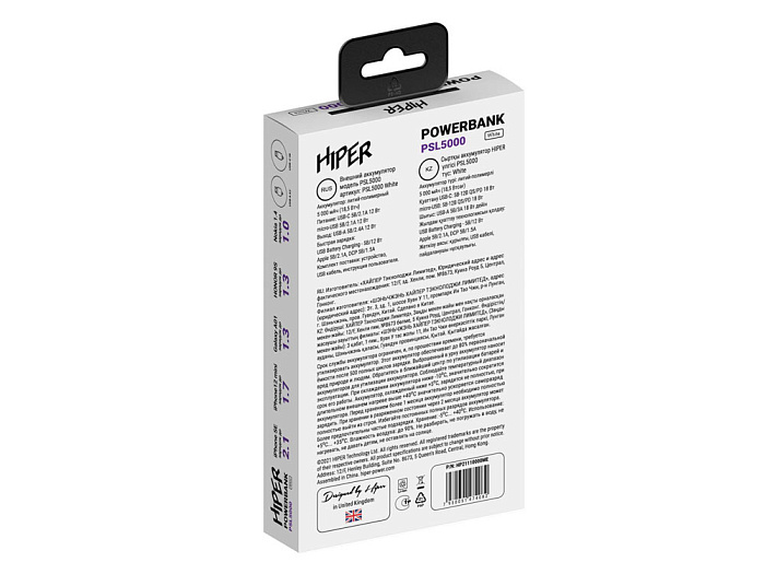 Портативный внешний аккумулятор PSL, 5000 mAh