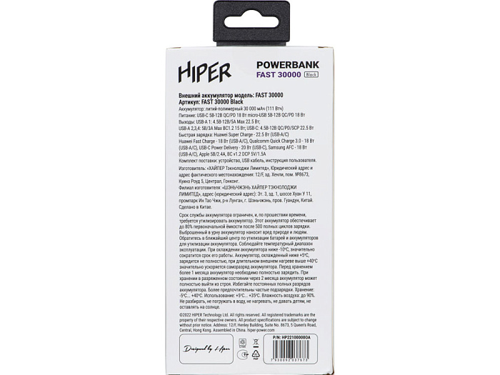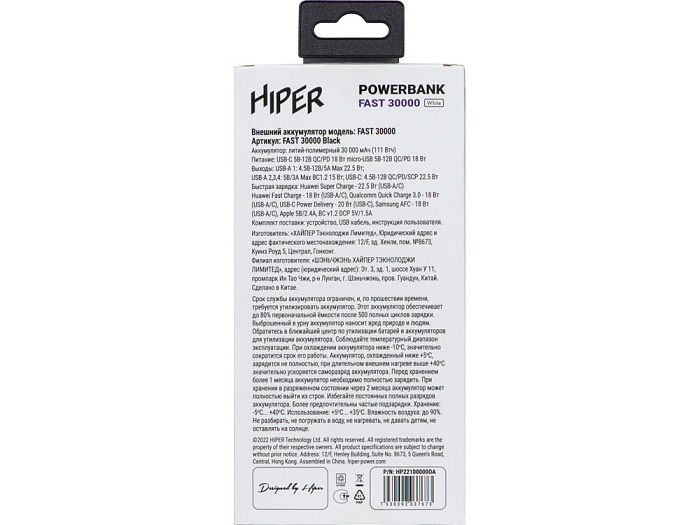 Портативный внешний аккумулятор FAST, 30000 mAh