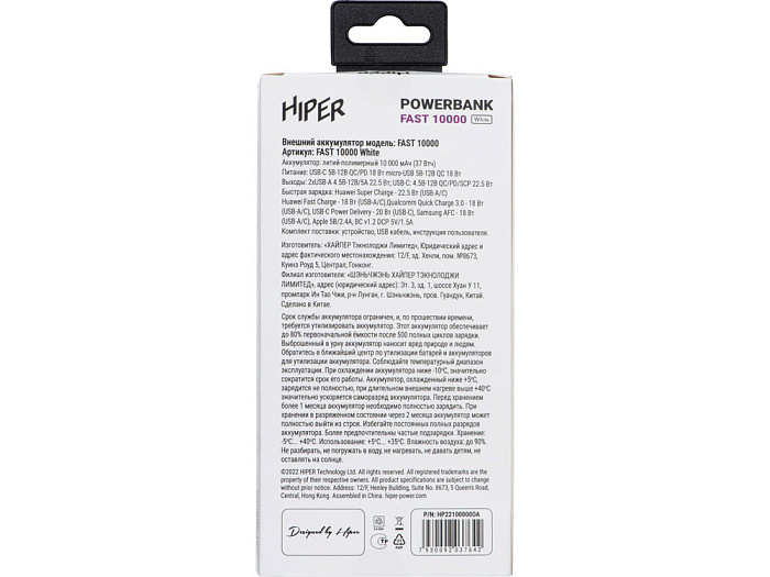 Портативный внешний аккумулятор FAST, 10000 mAh