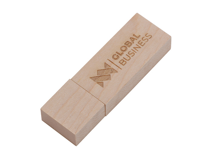 USB 2.0- флешка на 8 Гб в виде деревянной карточки с выдвижным механизмом