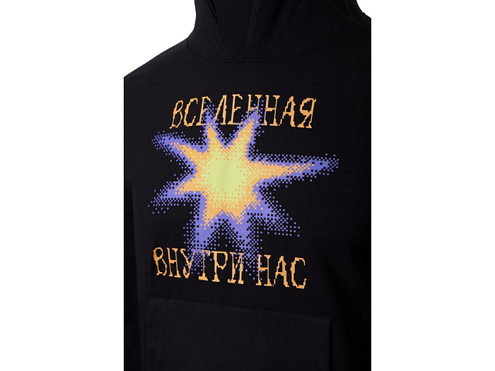 Свитшот Motion унисекс с начесом, черный с нанесением Трафарет Пуфф