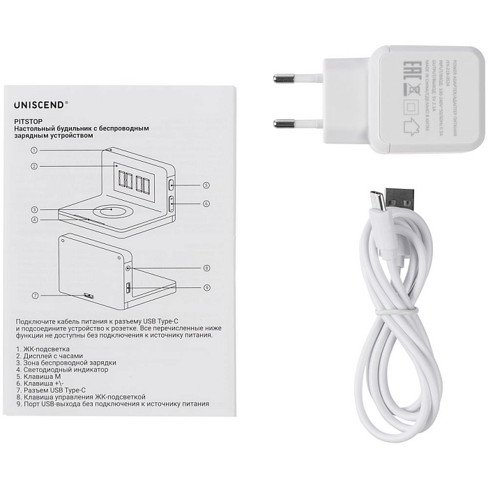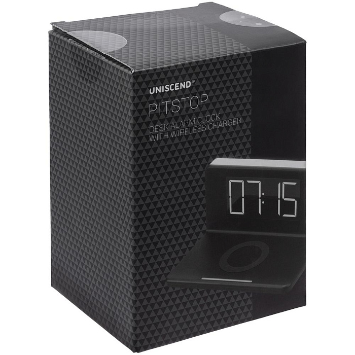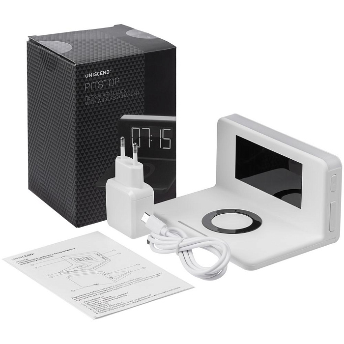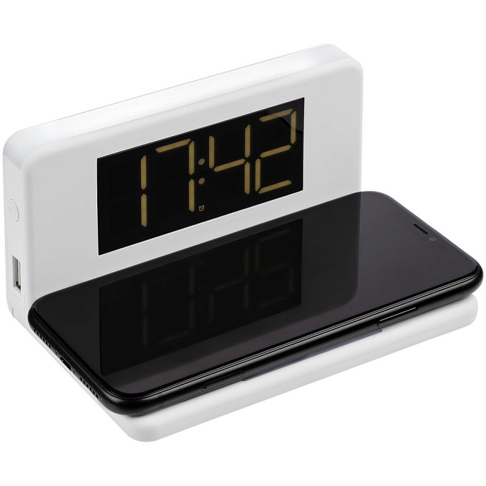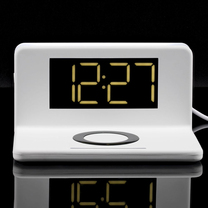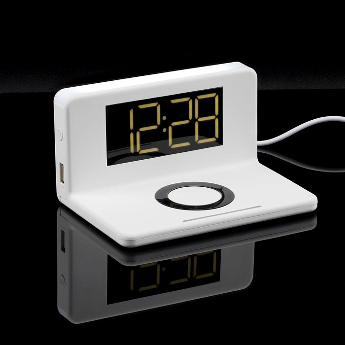 Часы настольные с беспроводным зарядным устройством Pitstop, белые
