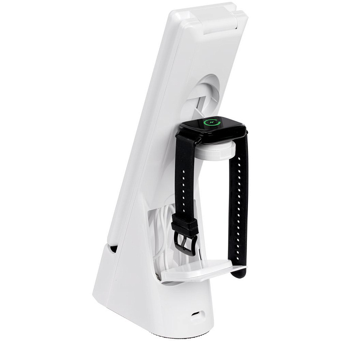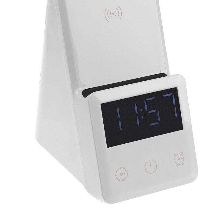 Лампа с будильником для беспроводной зарядки смартфона и часов Powerack, белая