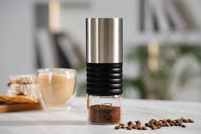 Портативная кофемолка Moxie, серебристо-черная