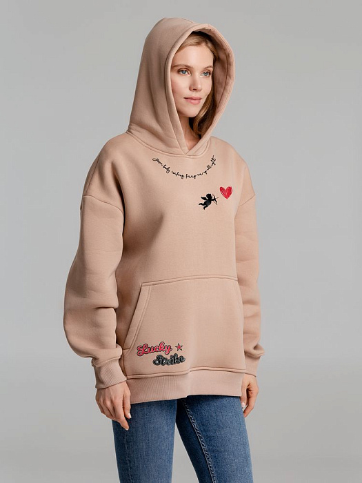 Худи оверсайз с термонаклейками Lucky Strike, бежевое