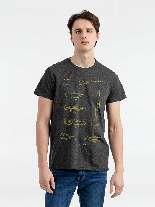 Футболка приталенная Old Patents. Knife, черный меланж