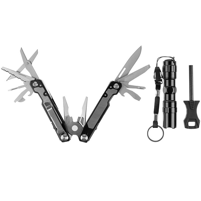 Набор Forster: мультиинструмент, фонарик, огниво, черный