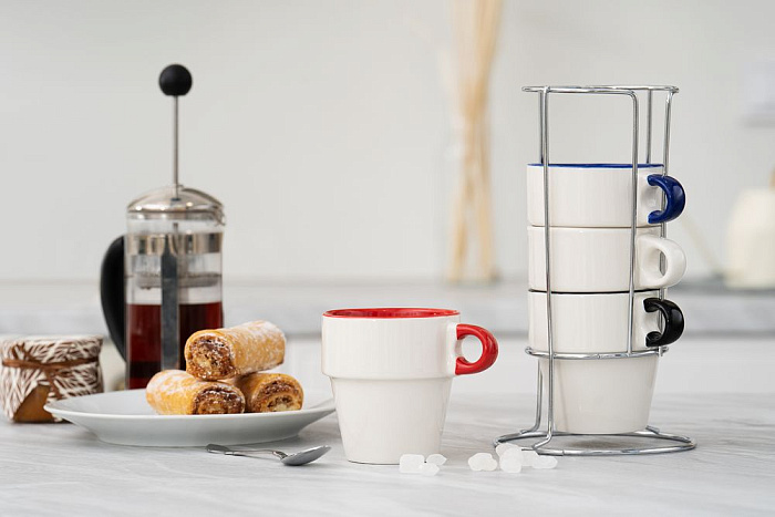 Набор из 4 кружек Inset с подставкой, красный