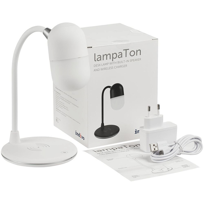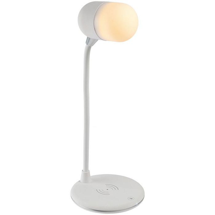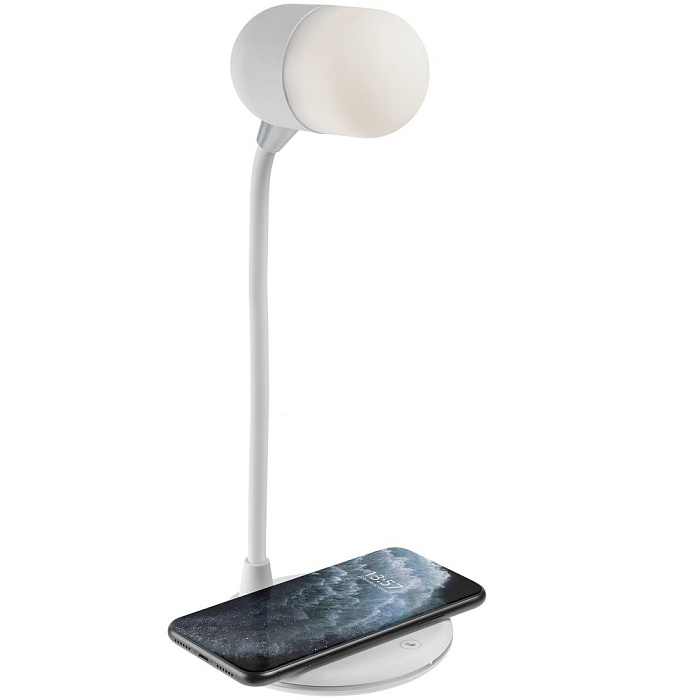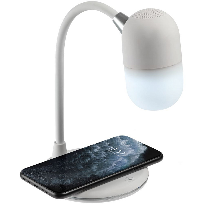 Лампа с колонкой и беспроводной зарядкой lampaTon, белая