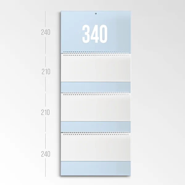 Картон 300 г/м2, ширина 340, верхняя и нижняя подложка размер 340х240, средние подложки размер 340х210 мм, сетка стандартная, бумага мелованная 90 г/м2, печать 4+0, сборка на пружину, пиколо, курсор